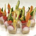 Vegetable frittata rounds with tomato and chili dip (v, gf)