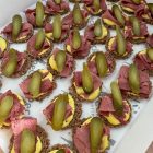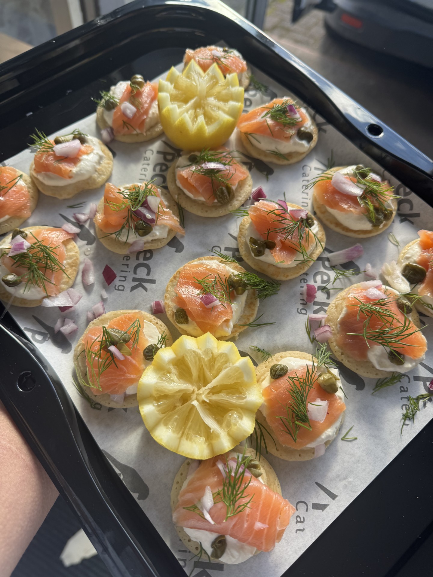 Our canapés are served cold, ready to serve on recyclable/reusable windowed platters. If you would like a more formal set up with decor , please get in touch for a quote.