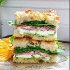 Tuna crunch in our light mayo with fresh sweetcorn, onion, and peppers layered under spinach and beetroot.